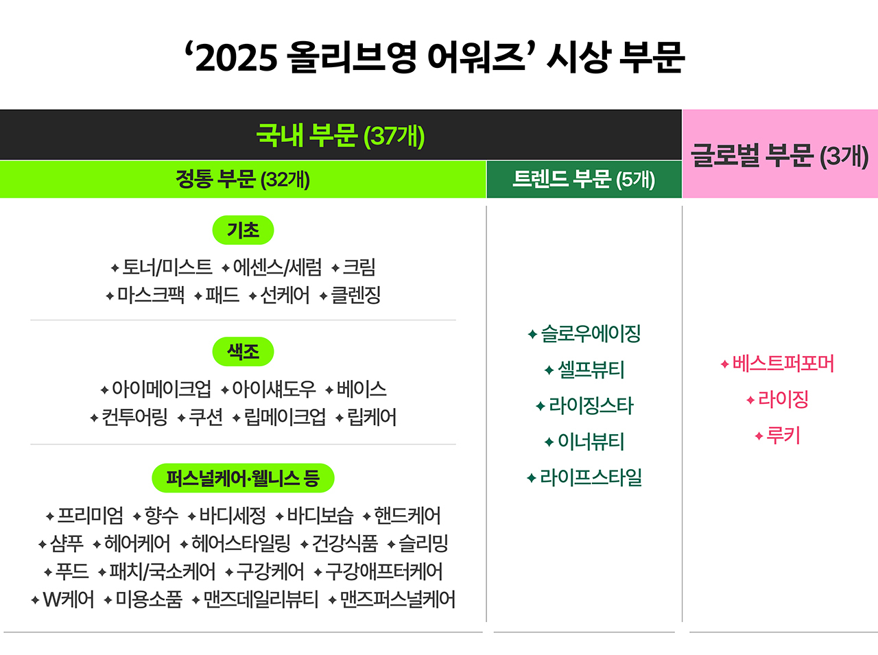 ◇ ‘2025 올리브영 어워즈’ 선정…최신 K뷰티∙웰니스 트렌드 반영해 부문 신설∙세분화