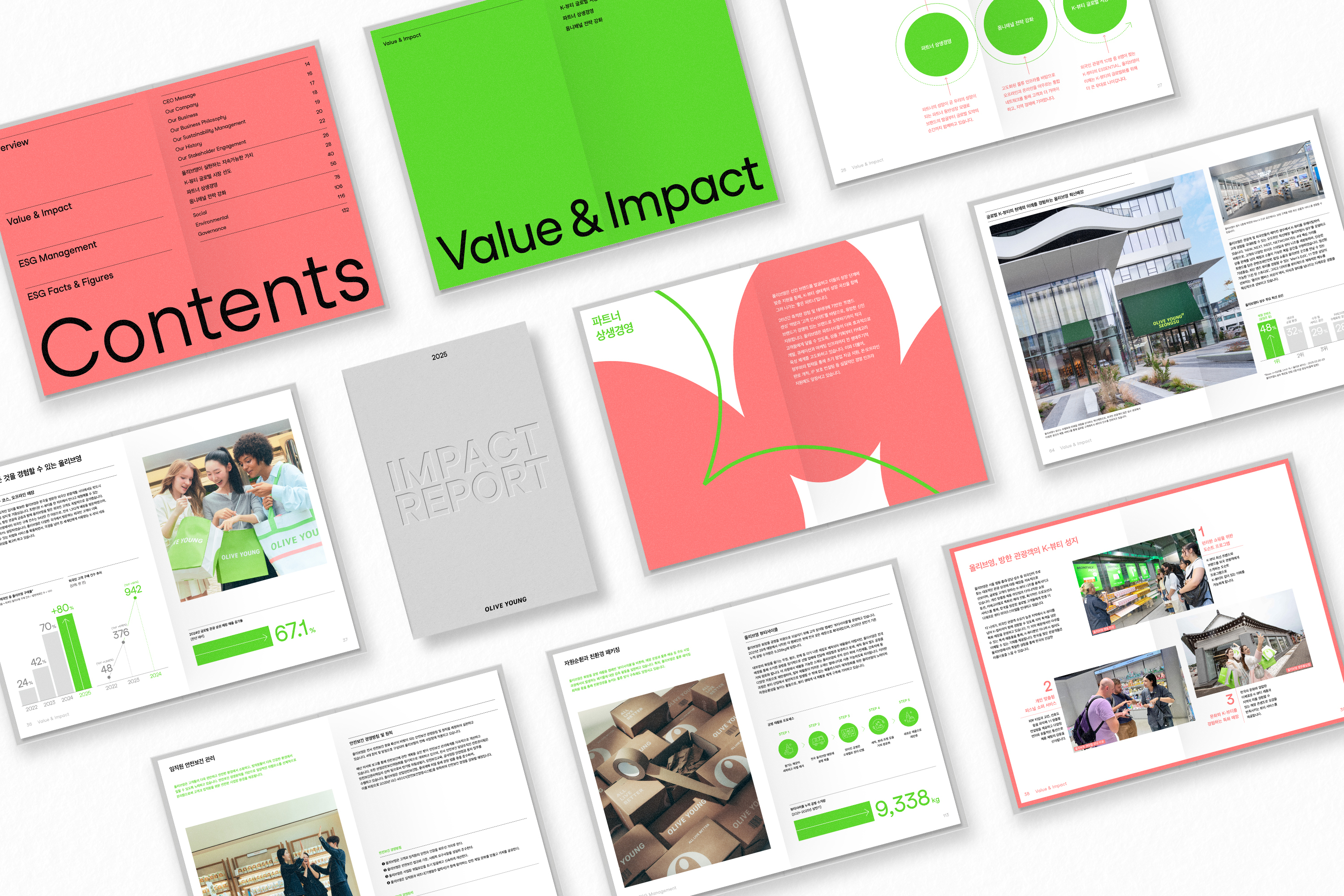 이번 보고서는 2024년 한 해 동안 올리브영이 추진해 온 사업 활동이 환경·사회에 미치는 영향과 지속가능성이 기업에 미치는 재무적 영향을 종합적으로 평가해 작성됐다. 글로벌 사업 다각화에 따라 이해관계자 범위가 국내에서 해외까지 확대되고 있는 점을 반영해 국문·영문 두 가지 언어로 발행했다.